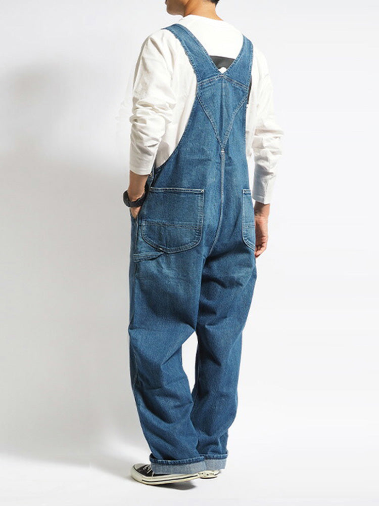 Men‘s Washed Streetwear Pocket Suspender Denim Overalls