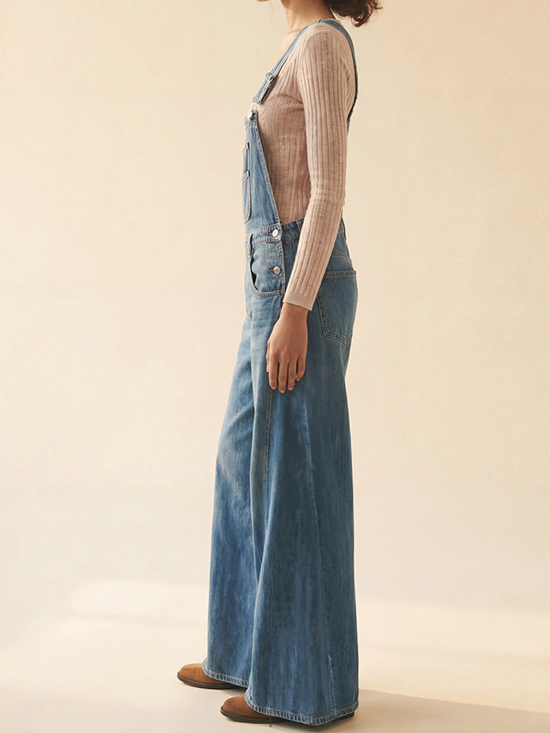 Wide-Leg Denim Overalls