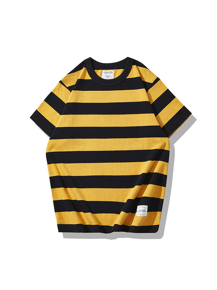 Level up your casual wardrobe with these Men’s Cotton - blend Striped Crew Neck Tees. Made from a cotton - rich blend, they offer a winning combo of softness, breathability, and durability. Featuring classic stripe patterns in versatile color schemes—including green -white, black-white, apricot-white, and yellow-black—these tees bring a timeless, effortlessly cool vibe. Pair them with jeans, shorts, or layer under jackets for a laid - back weekend look or a retro daily outfit. Comfort and style go hand in hand with these tees.