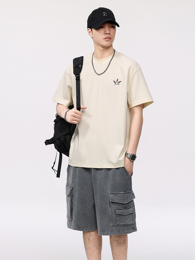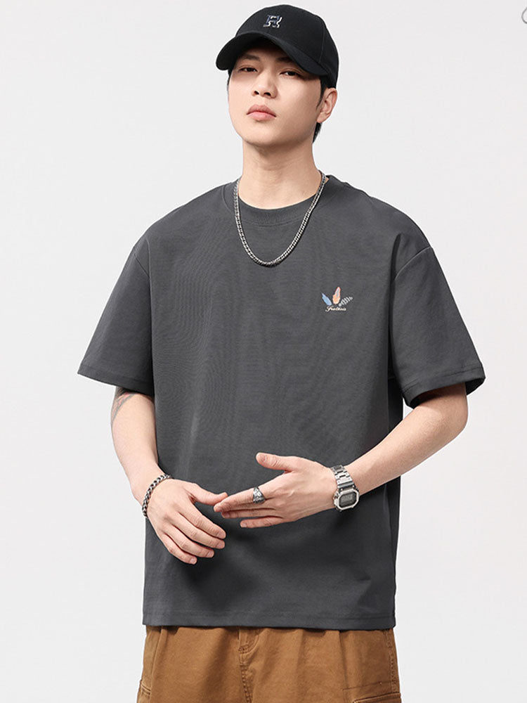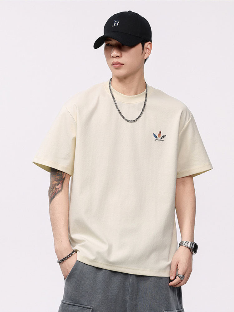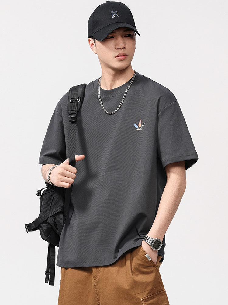 Elevate your casual wardrobe with the Men's Feather - Printed Casual Tee. Crafted from a 71.4% cotton + 23.5% polyester + 5.1% spandex blend, this tee offers a perfect balance of comfort, durability, and stretch. The front features a subtle feather logo, while the back showcases an eye-catching circular feather pattern, adding a touch of artistic flair to your everyday look. Available in beige and dark gray, it's ideal for laid-back outings, weekend hangouts, or simply lounging in style. Pair it with jeans, shorts, or joggers for a relaxed yet fashionable ensemble.