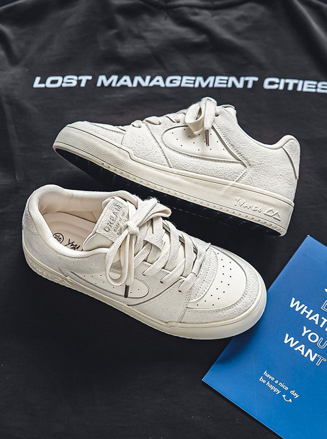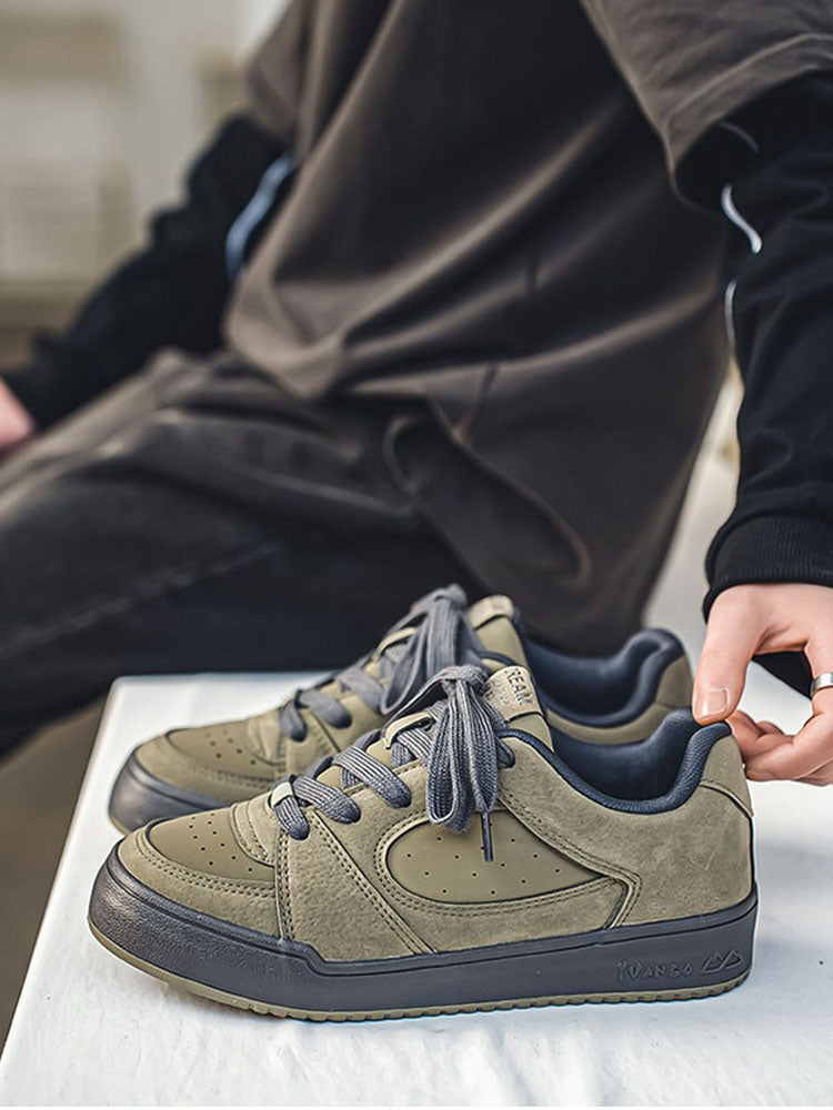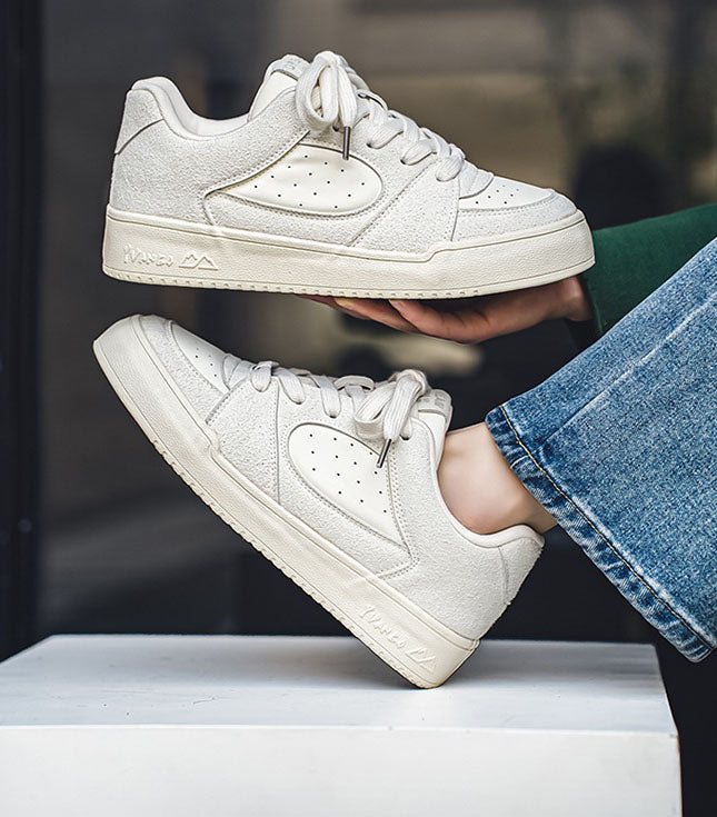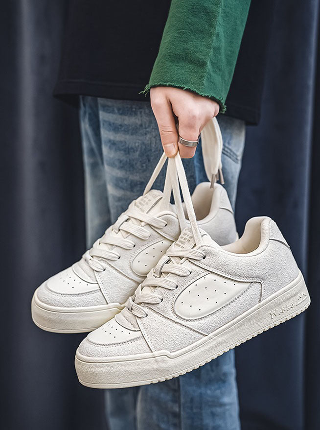 Bring back the classic streetwear vibe with these Vintage-Inspired skate-style sneakers. Designed with a low-top silhouette and a mix of smooth and textured finishes, they blend comfort with effortless style. The cushioned sole ensures all-day wearability, while the sturdy construction makes them perfect for casual outings, skate culture looks, or everyday streetwear. Available in versatile neutral tones, these sneakers pair easily with jeans, joggers, or shorts for a laid-back yet stylish appearance.