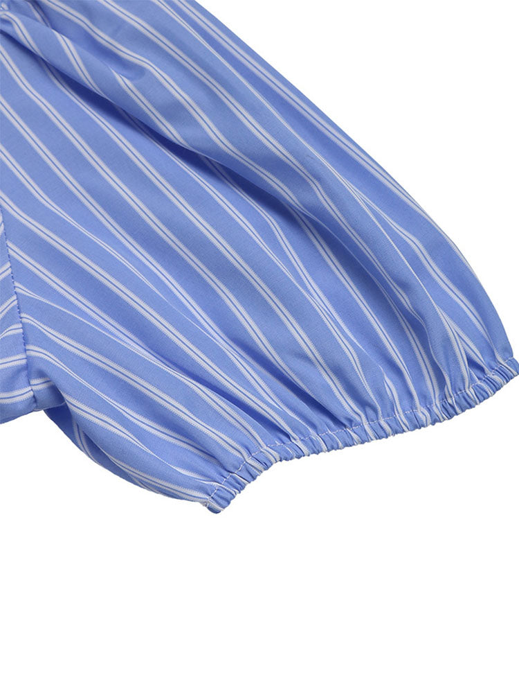 Step into chic style with Women's Polyester - Blend Striped & Solid Bow-Front Dress. Crafted from a comfortable polyester-blend fabric, this dress features a charming bow-front detail and puff sleeves for a feminine touch. The striped and solid color options (blue-white stripe and classic black) offer versatility for different occasions. The elastic waist ensures a flattering fit, making it perfect for brunches, parties, or casual outings. Pair it with your favorite sandals or heels to complete the look.
