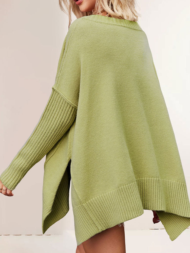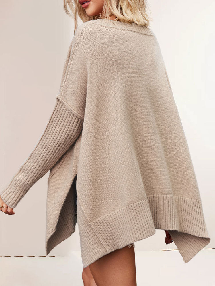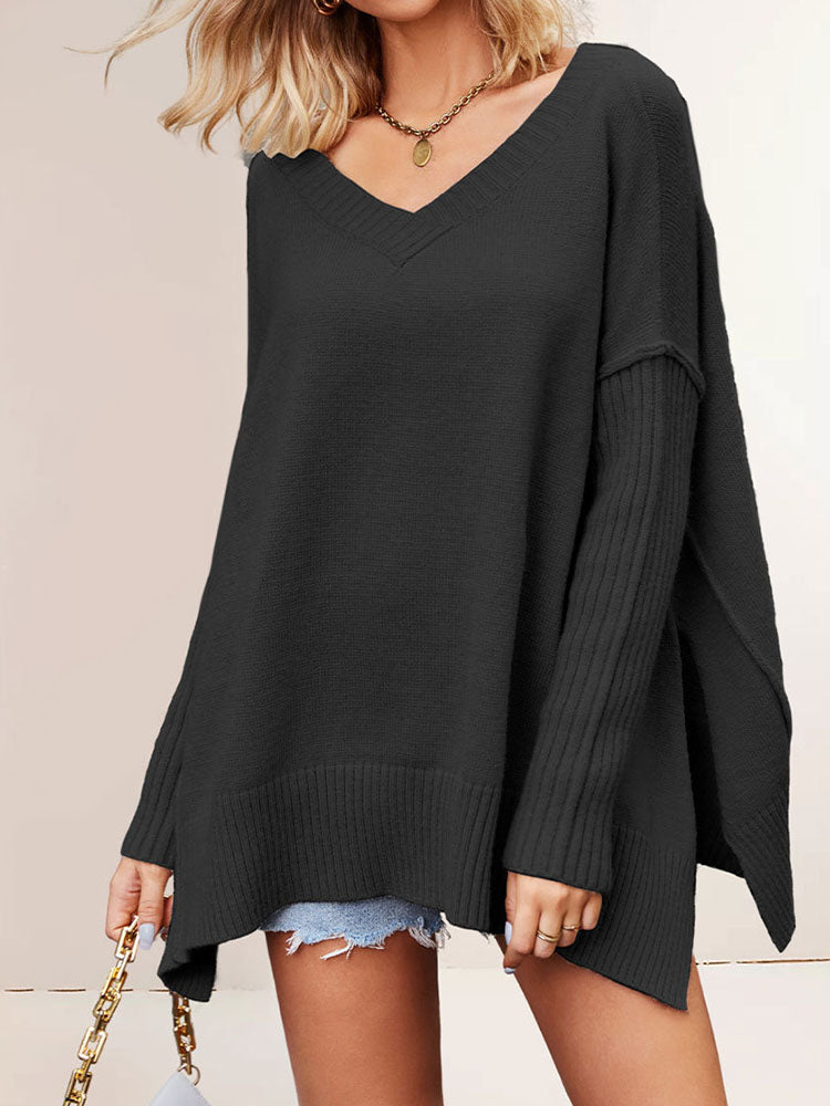 Women's V-Neck Asymmetrical Hem Oversized Sweater